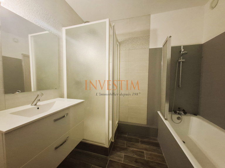 L'appartement se compose d'une pièce de vie lumineuse avec accès à un balcon , une cuisine aménagée et équipée , deux chambres , une salle de bain moderne avec douche et baignoire , ainsi que des WC séparés . L'ensemble est situé au rez-de-chaussée.
